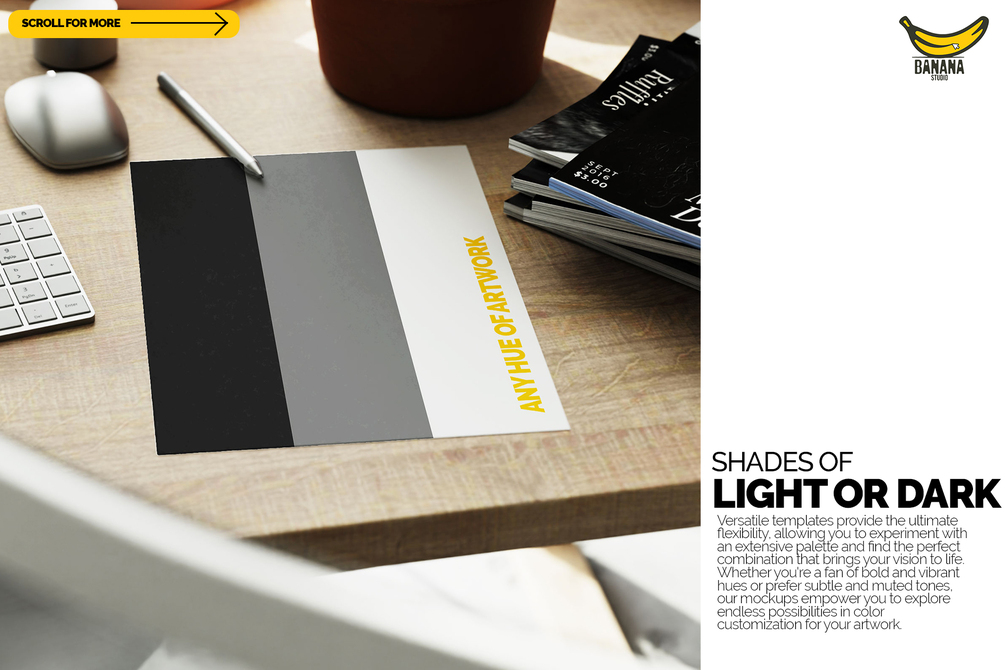 1. The designs featured are for presentation purposes only and are not included in the mockup.