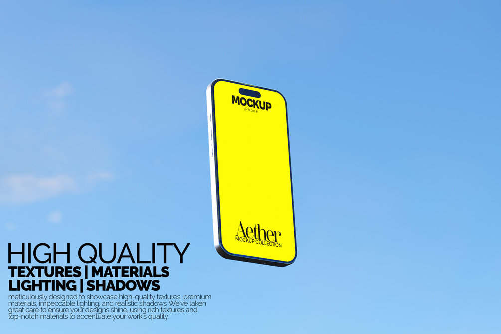 This iPhone Screen Mockup from the Aether Collection is ideal for app developers, UI designers, and digital sellers. Designed with natural shadows and editable smart layers, it brings clarity and polish to your mobile interface previews.